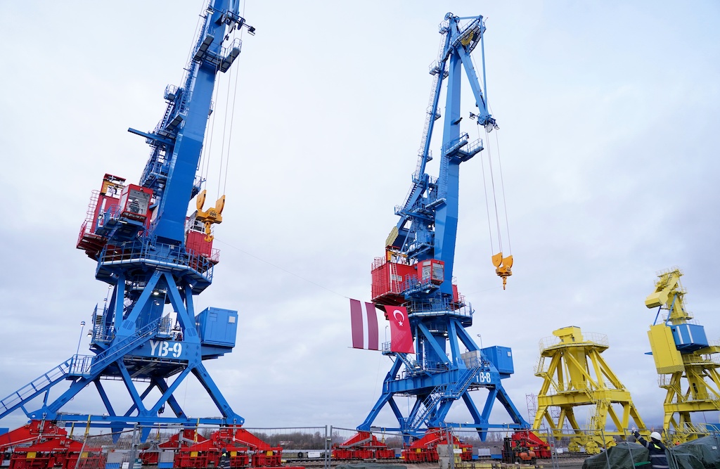 RIKON, the only portal crane manufacturer in the Baltic States, has presented two unique Double Jib Level Luffing Cranes at the Port of Riga. Built for a Turkish customer, the cranes will soon be shipped fully assembled to the port of İsdemir on the Mediterranean Sea, marking a significant new export opportunity for Latvia. The remaining four cranes in the six-unit order will be delivered to the port of Ereğli on the Black Sea.