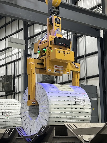 Based in Rockford, Illinois, Caldwell is known for highly engineered lifting equipment, and the motorized telescoping Model 85 coil grab is among its most frequently specified products. While standard units are stocked in capacities up to 33 tons, the lifter is often tailored to individual applications. Available options include higher capacities, rotation features, load scales, indicator lights, protective padding, and toe rollers.