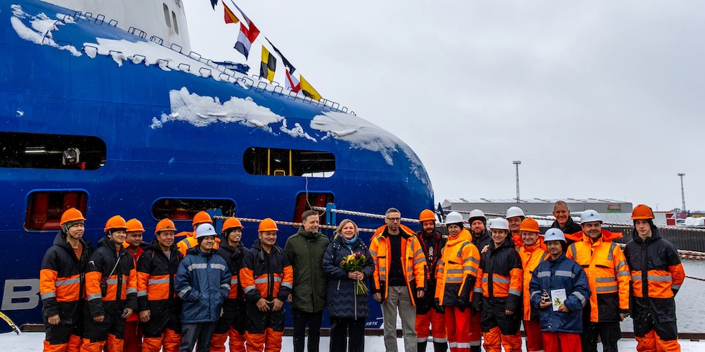 Anitta Schumann, Chartering Manager at BBC Chartering’s Bremen office since 2011, served as godmother. In keeping with maritime tradition, she wished the vessel “fair winds and following seas” before a champagne bottle was broken against the hull. Around 100 guests attended, including Kai Stührenberg, State Councillor at Bremen’s Senator for Economic Affairs, Ports and Transformation; Joachim Bothe, Deputy Port Captain of Bremen; and Matthias Magnor, CEO of BLG Logistics, alongside clients, partners, and employees of BBC Chartering and Briese Schiffahrt. The vessel and crew were subsequently blessed by Magnus Deppe of the Bremen Seamen’s Mission.