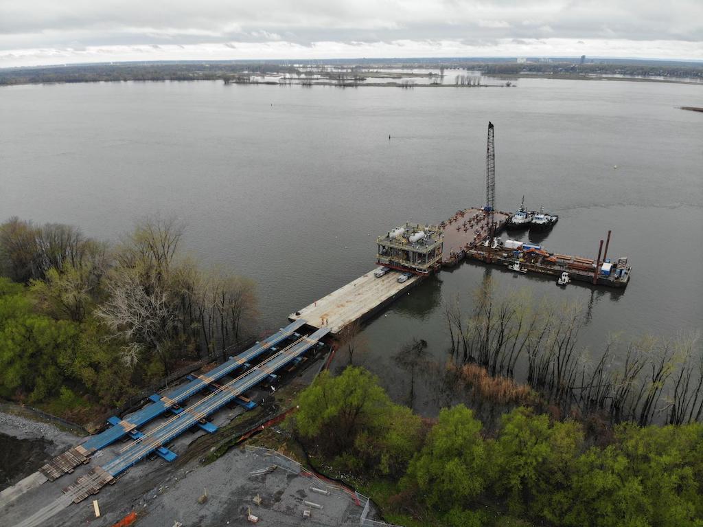 Against this backdrop, Sarens has completed a complex temporary bridge project at the Port of Bécancour in Québec, enabling the transport of large industrial modules under demanding site conditions. The heavy lifting and engineered transport specialist built a 60-metre temporary bridge to connect the shore to a stranded barge, allowing controlled loading and unloading operations despite restricted access and challenging weather along the riverbank.