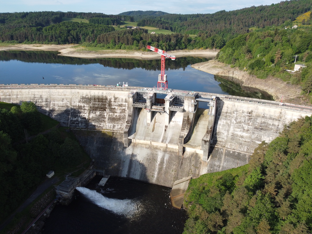Works include the full replacement of three gates from the 1950s and modernization of a fourth from the 1990s. “The dam crest is only 6.7 meters wide, which made crane erection and delivery logistics a demanding task,” said Cécile Caron. Wind gusts exceeding 45 km/h extended assembly to around 3.5 days.